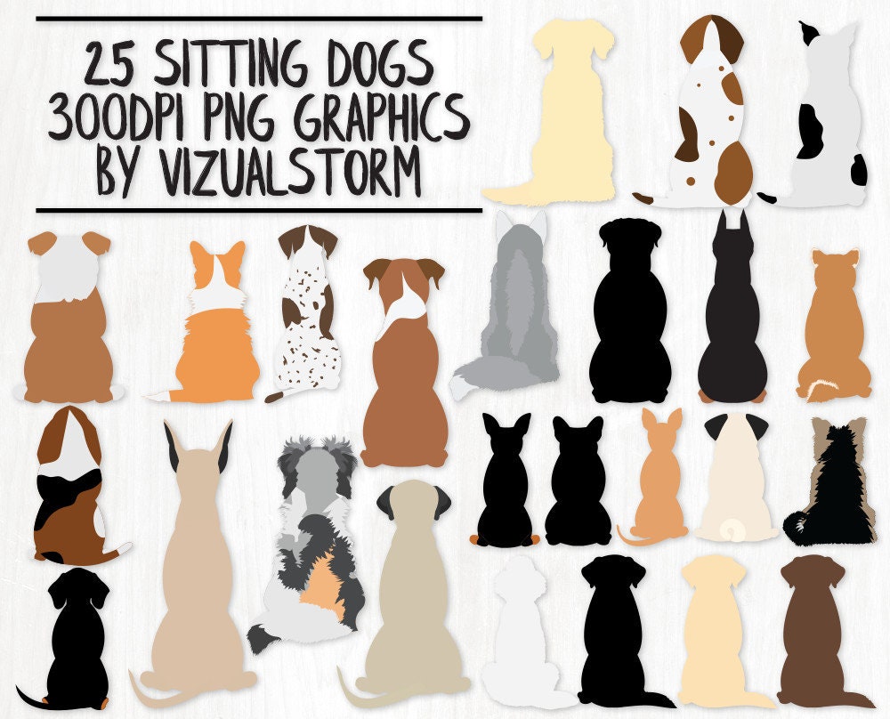 Back Sitting Dogs Illustrations 25 Dog Breed Graphics Aussie Etsy De