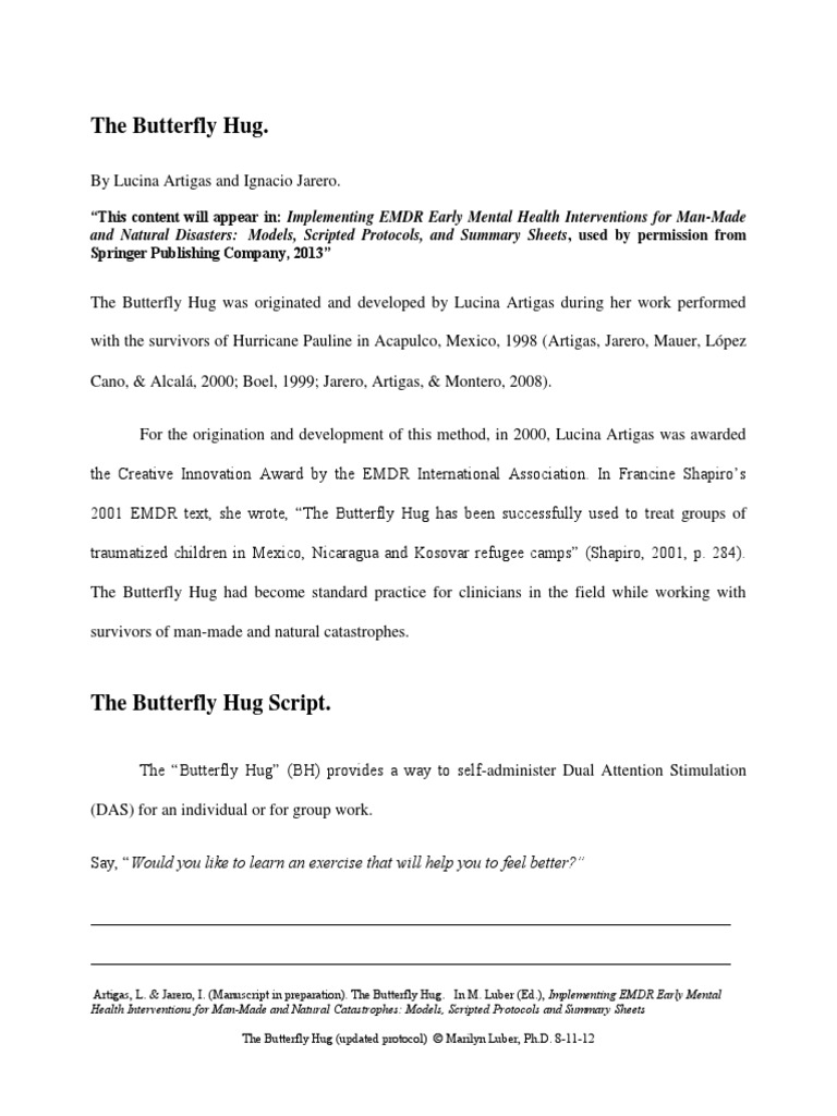The Butterfly Hug Protocol Pdf Eye Movement Desensitization And Reprocessing Psychological Trauma