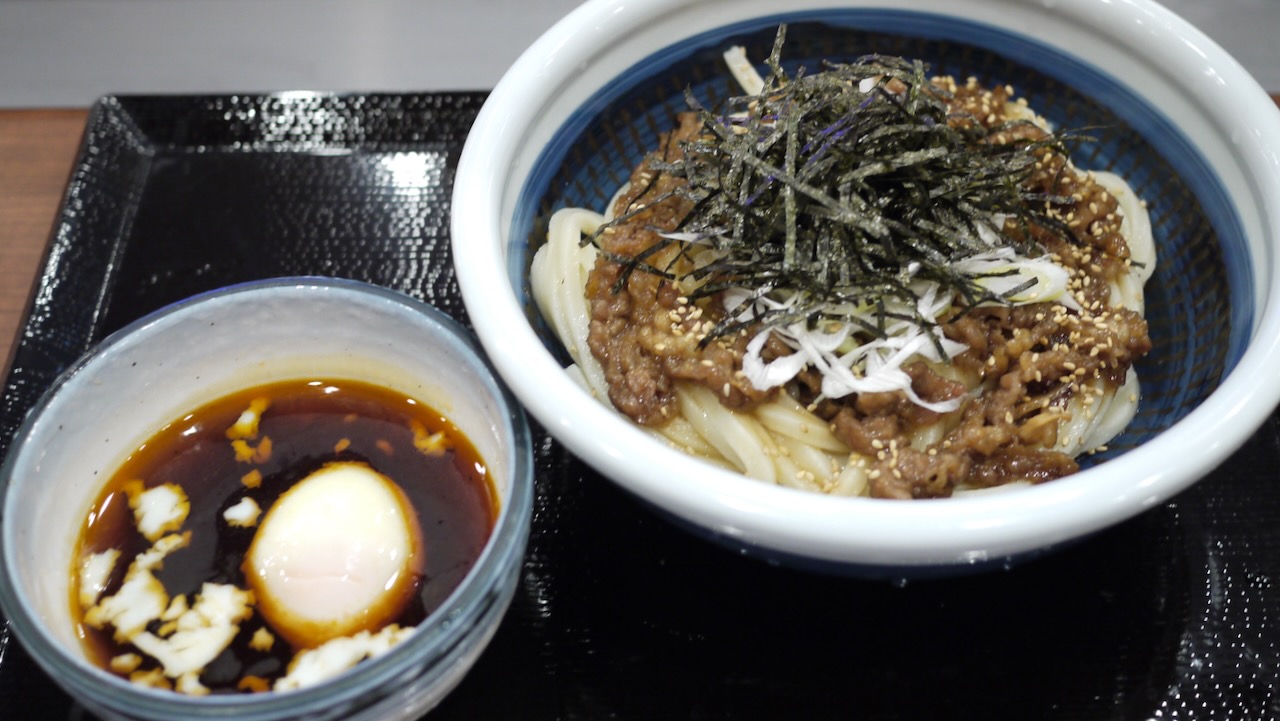 贅沢ぅ 丸亀製麺の新作 旨辛肉つけうどん 食べてみた 甘辛ダレに温泉玉子が至高のうまさ Appbank