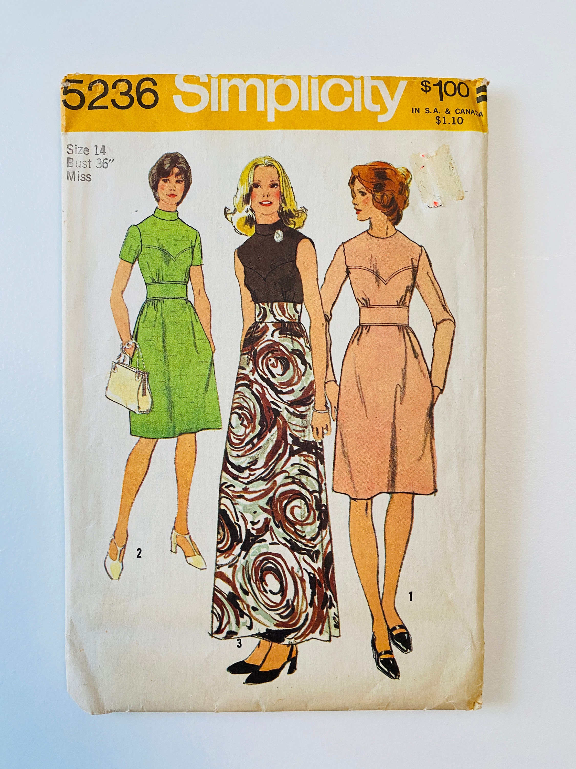 Simplicity 5236 Size 14 Bust 36 In 1972 Dress Pattern In Etsy