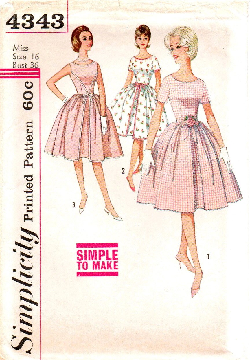 1960 S Simplicity 4343 Full Skirt Dress Pattern Bust 36 Etsy
